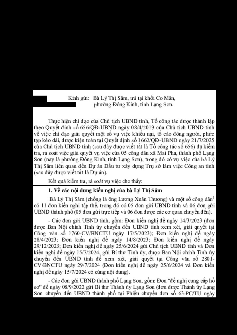 Thông báo về việc chấm dứt thụ lý giải quyết vụ việc bà Lý Thị Sâm, trú tại thôn Co Măn, xã Mai Pha, thành phố Lạng Sơn (nay là khối Co Măn, phường Đông Kinh, tỉnh Lạng Sơn)