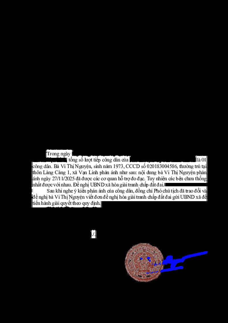 Kết quả tiếp công dân định kỳ ngày 25/12/2025 của Chủ tịch Ủy ban nhân dân xã Vạn Linh