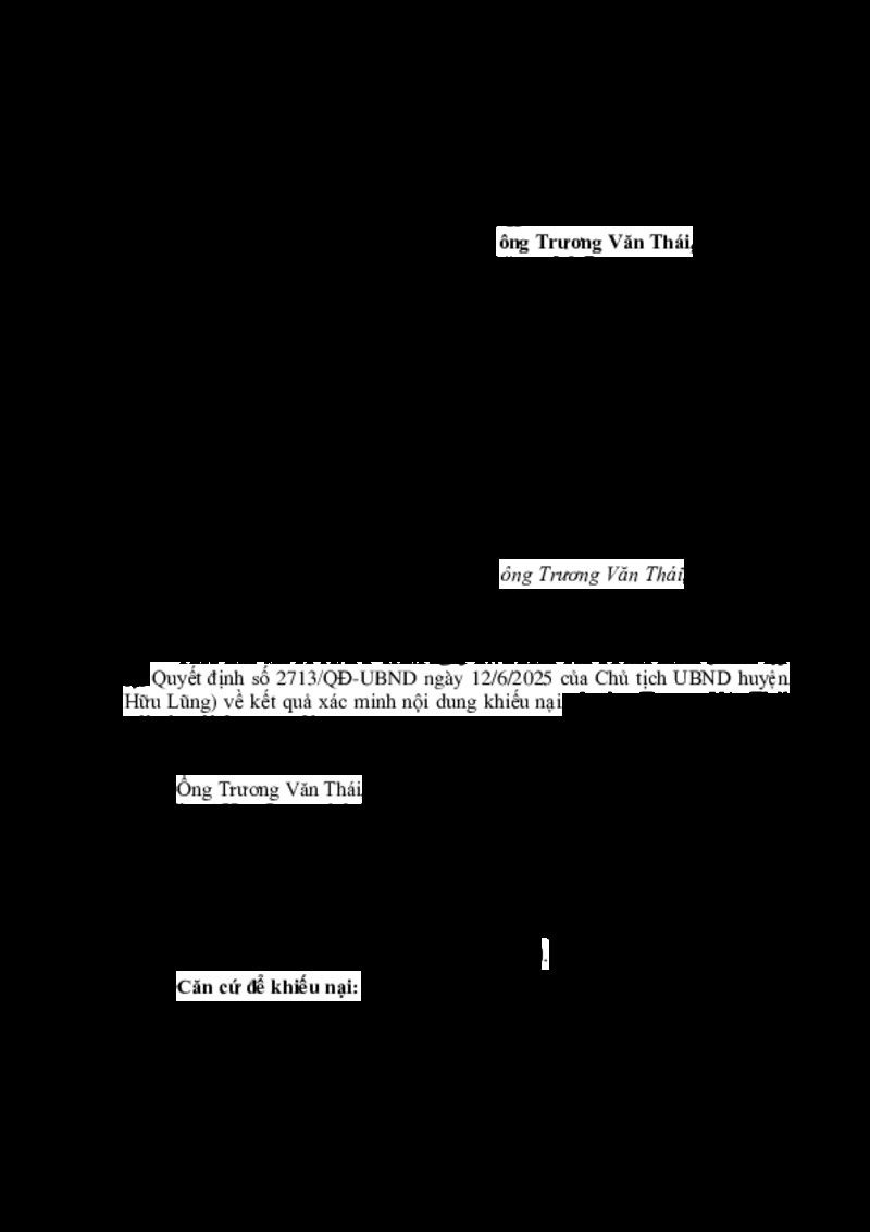 Về việc giải quyết khiếu nại của ông Trương Văn Thái, trú tại thôn Phú Vị, xã Hữu Lũng, tỉnh Lạng Sơn (lần đầu)