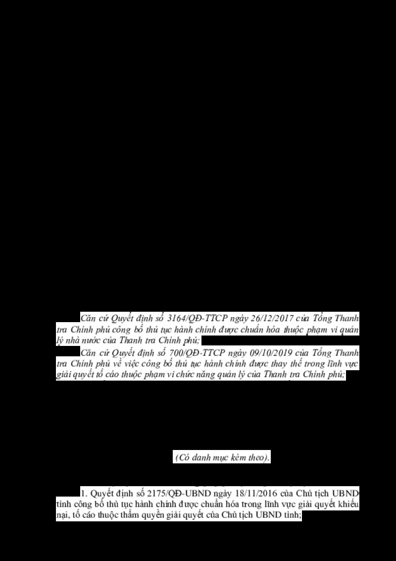 Về việc công bố Danh mục thủ tục hành chính thuộc phạm vi chức năng quản lý, thẩm quyền giải quyết của Thanh tra tỉnh, UBND cấp huyện, UBND cấp xã tỉnh Lạng Sơn