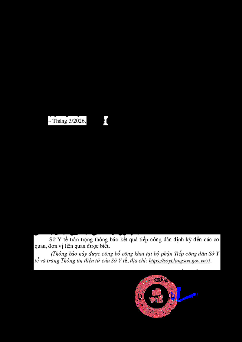 Thôn báo kết quả tiếp công dân định kỳ tháng 3 năm 2026 của Giám đốc Sở Y tế